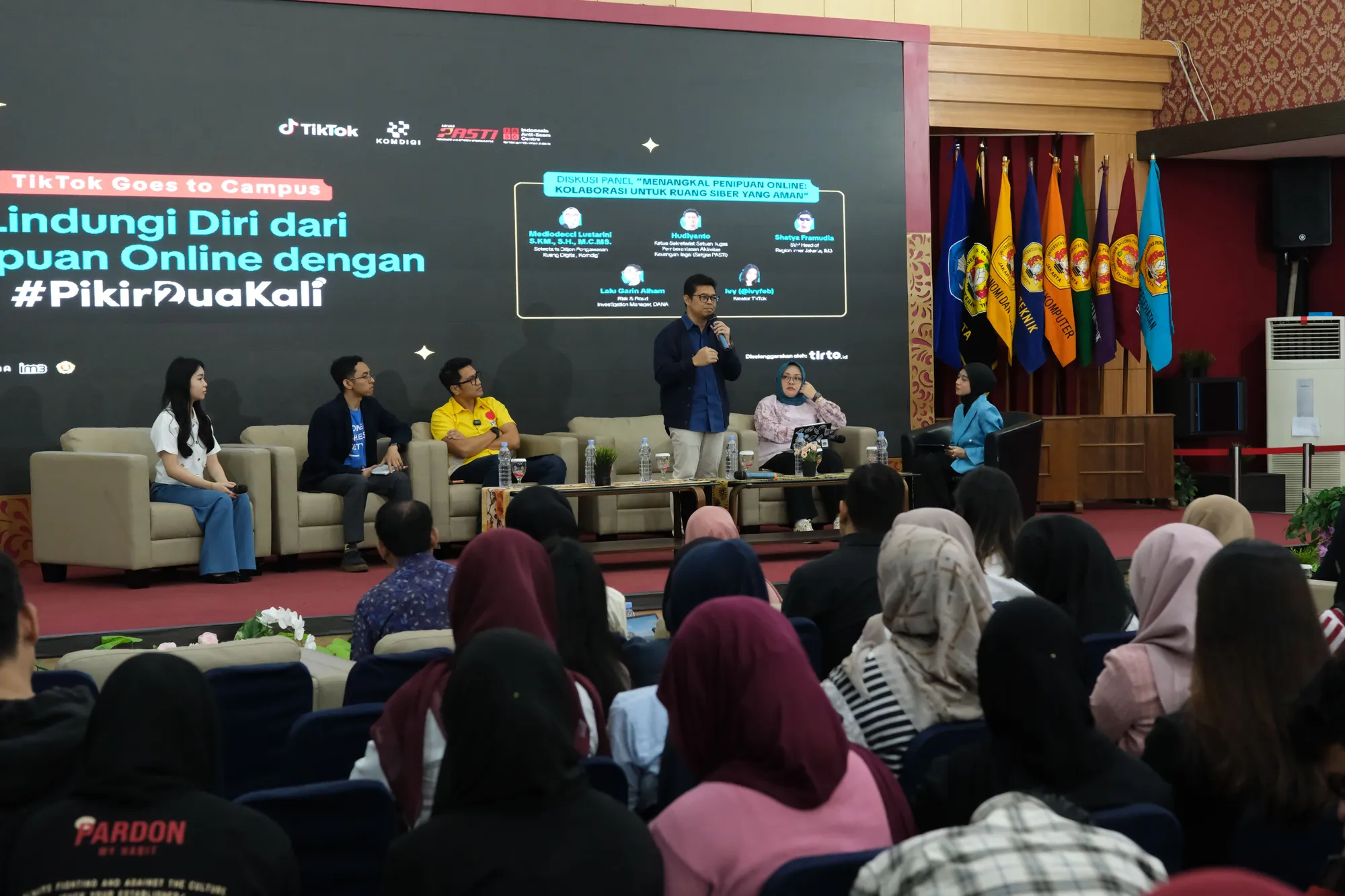 Dari fenomena inilah TikTok tergerak menghadirkan kampanye edukatif #PikirDuaKali, sebuah gerakan untuk meningkatkan kesadaran masyarakat terhadap berbagai bentuk penipuan online. Melalui serangkaian kegiatan yang digelar secara online maupun offline, kampanye ini ingin mendorong pengguna untuk lebih berhati-hati serta memanfaatkan fitur keamanan yang tersedia di platform digital seperti TikTok agar bisa melindungi diri dan orang sekitar. Salah satu aktivitasnya adalah lewat program TikTok Goes to Campus.