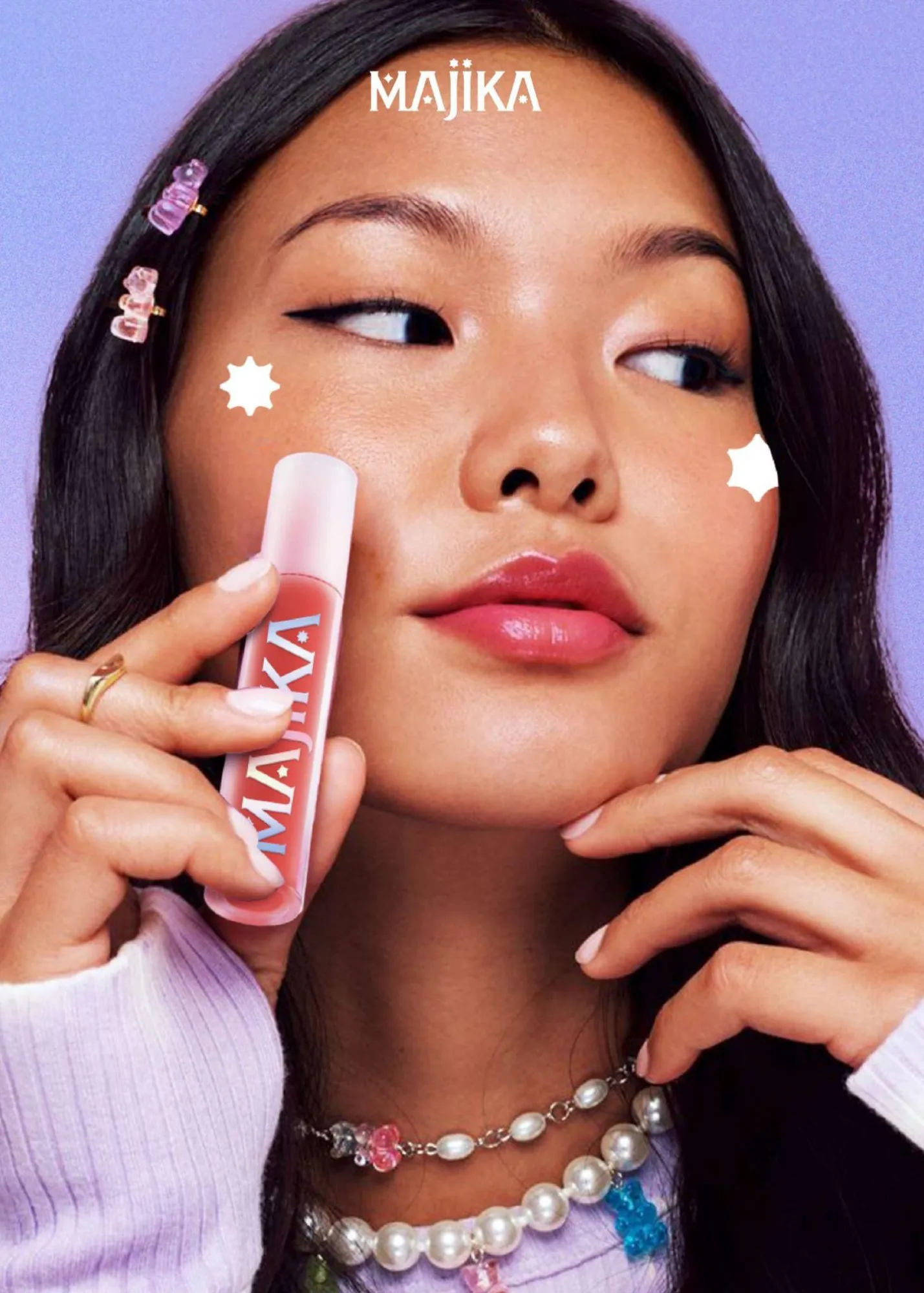 Setelah dasar matte-nya merata, lanjutkan dengan Majika Unicorn Kiss Lip Tint di bagian bawah bibir. Aplikasikan perlahan menggunakan ujung aplikator untuk hasil yang presisi, lalu ratakan sedikit ke arah tengah bibir agar gradasinya terlihat natural. Warna glowy dari Unicorn Kiss akan memberikan efek segar dan berdimensi, bikin bibir tampak lebih penuh tanpa perlu overlining. Kalau mau hasil yang lebih intens, tambahkan sedikit di tengah atas bibir dan tepuk perlahan menggunakan jari untuk menyatukan dua warna.