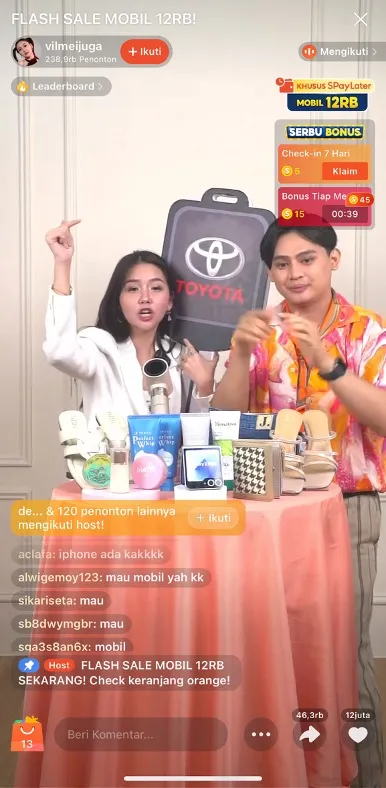 Flash Sale Mobil di Sesi Shopee Live Vilmei Tarik Banyak Perhatian, Hingga 1,5 Juta Penonton