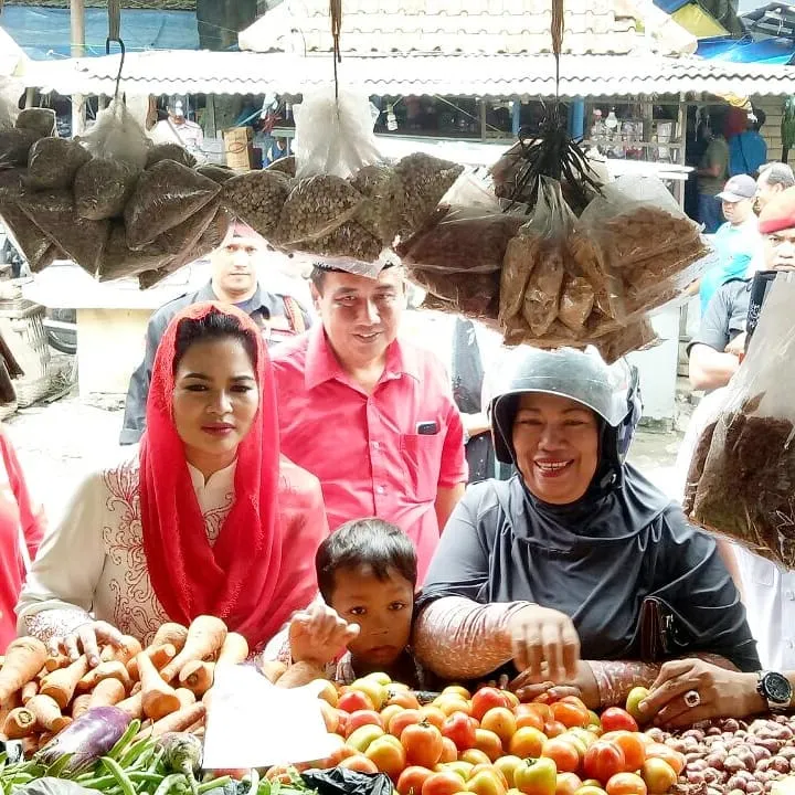 Perempuan yang akrab disapa Mbak Puti ini nggak canggung sama sekali saat berbaur dengan masyarakat di pasar. Bahkan, ibu dua anak ini terlihat tawar menawar harga di sana. Wah, seru nih kelihatannya!