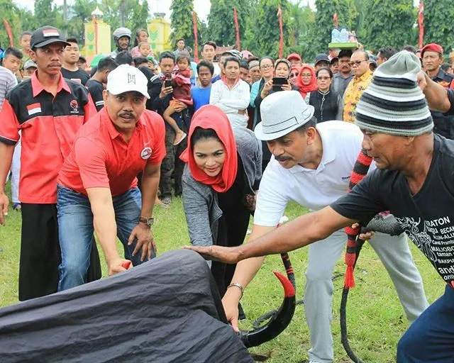 Setelah dari pasar, agenda Puti selanjutnya adalah menyapa masyarakat di alun-alun Jombang. Puti mendapatkan kesempatan untuk membuka kesenian tradisional Bantengan yang pastinya sudah nggak asing lagi bagi warga Jombang.